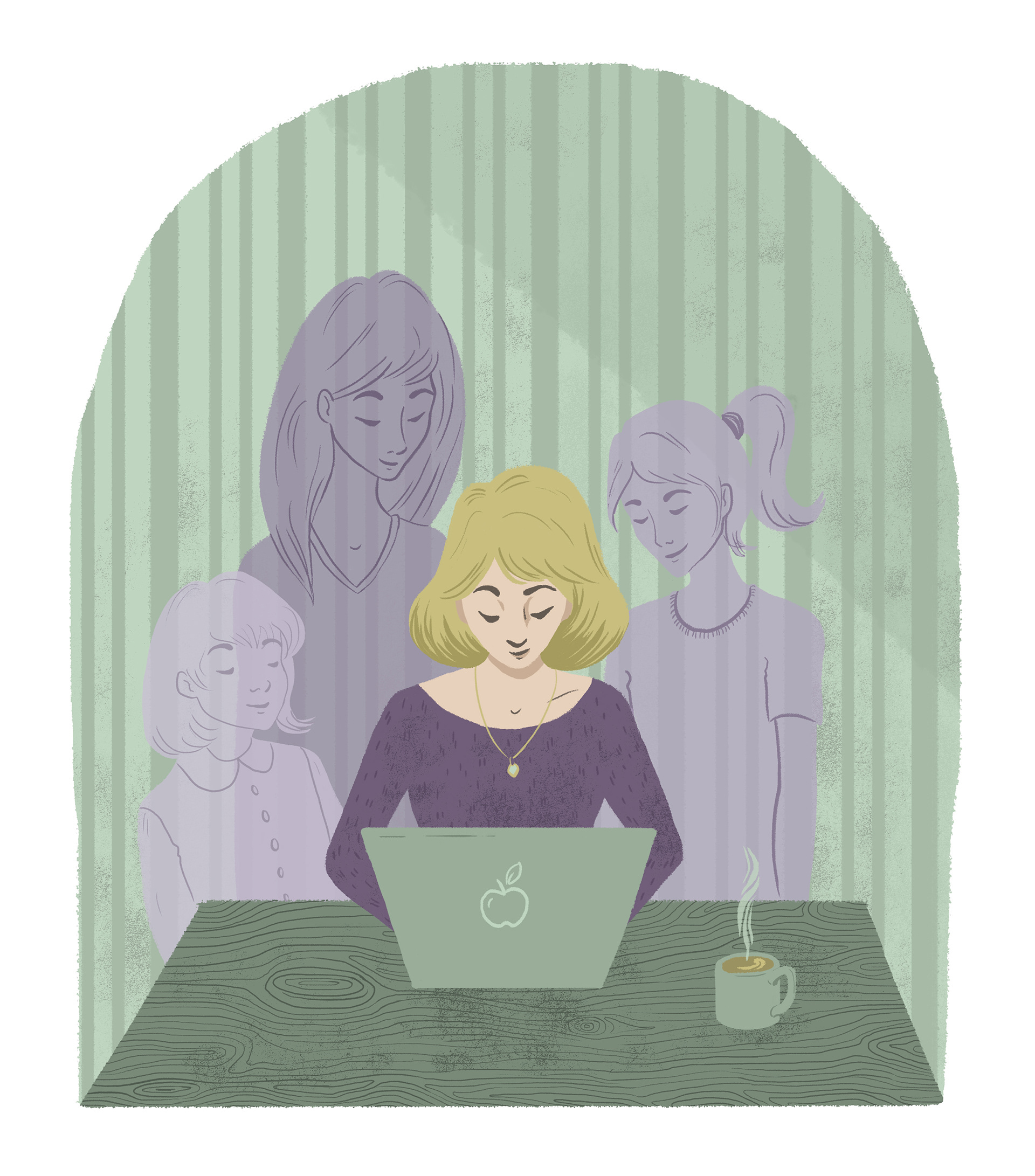 Editorial illustration for an essay about how memoir writing draws from many periods in the writer's life.