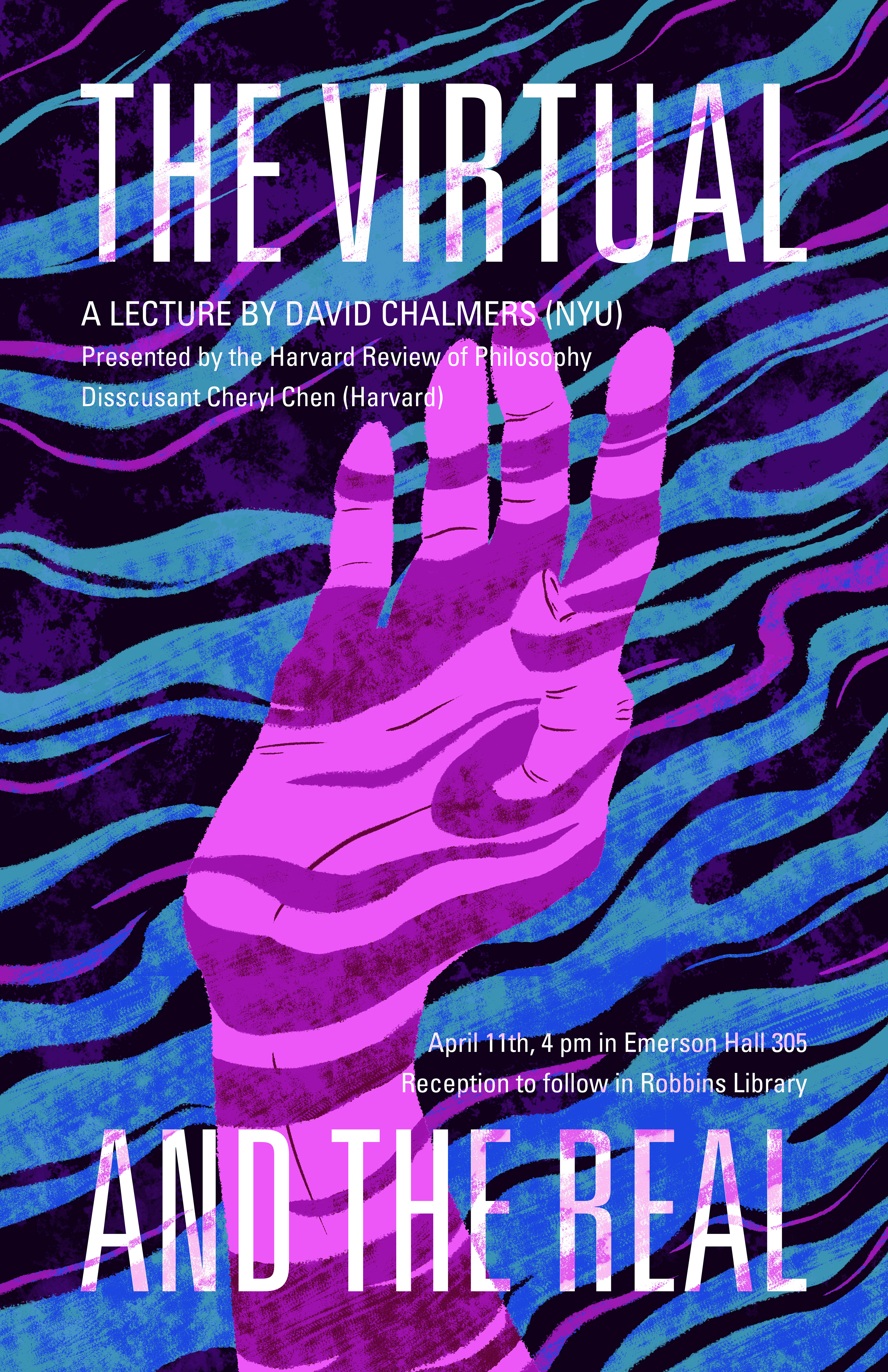 A poster advertising a lecture at Harvard University about philosophy and Virtual Reality. Commission for Harvard Review of Philosophy Annual Lecture.